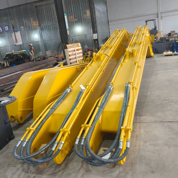 40-50吨位发掘机加长臂,可加长到26米,其设置装备摆设为:挖斗1个、铲斗油缸1支、销轴6支、 高压软管4条、黄油管3条、连杆总成1套、🎐运输连杆1套、加长大臂(14米)、加长小臂(12米)。